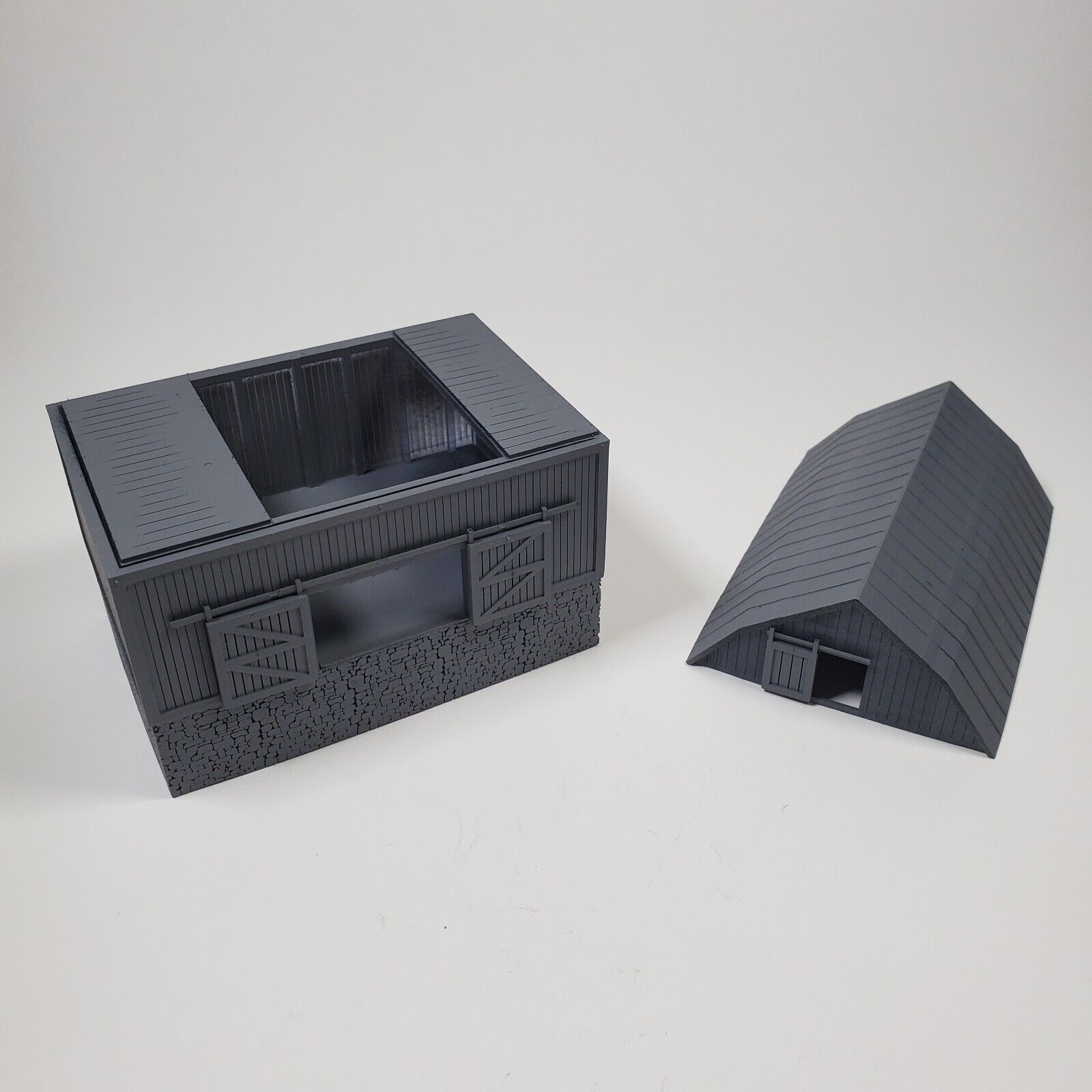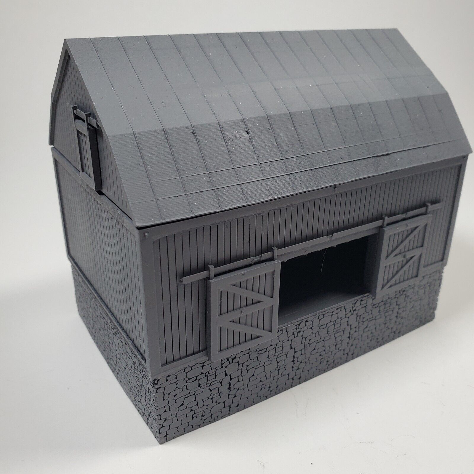 Enhance the look of your model railroad diorama with this 3-level barn from Jax Scale Models. Made of high-quality resin material, this unpainted barn model is perfect for a rural scene on your N scale model train layout. The model includes three levels of the barn, each with intricate details that will make it a great addition to your scenery collection. This style of barn is either built into a hill or uses an earthen ramp to gain access the main level. Designed and manufactured in the United States, this 1:160 scale barn is a must-have for model railroaders who want to add a touch of realism to their layout. Whether you're a seasoned collector or just starting out, this barn set is sure to impress. So, make your model railroad rural scene stand out with this Jax Scale Models 3-level barn.
