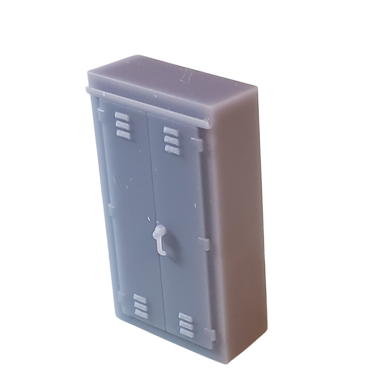 The railroad signal box contains the electronics and back-up batteries to control the crossing signals and arms/gates. This model is based on a design that may be found all over the country. The back-up batteries in this style are housed in a separate battery box. Located near the signal box, the battery boxes were typically constructed of concrete with a metal cover. This set is a 6 pack and does not contain any actual electronics. The model is resin 3D printed for maximum detail in N scale (1:160), 0.25" wide, 0.12" deep and 0.45" tall. The battery box is approximately 0.25" wide, 0.25" deep and 0.1" tall. The model comes unpainted. This model is for display only. It is not a toy. The model contains small parts that could present a choking hazard to children. It contains UV cured resin and should not be displayed in direct sunlight.Add realistic trackside detail to your N scale layout with this 6-pack of Signal Electronics Cabinets. Commonly seen near signals, crossings, and interlockings, these compact cabinets represent the essential equipment that powers real-world rail operations.