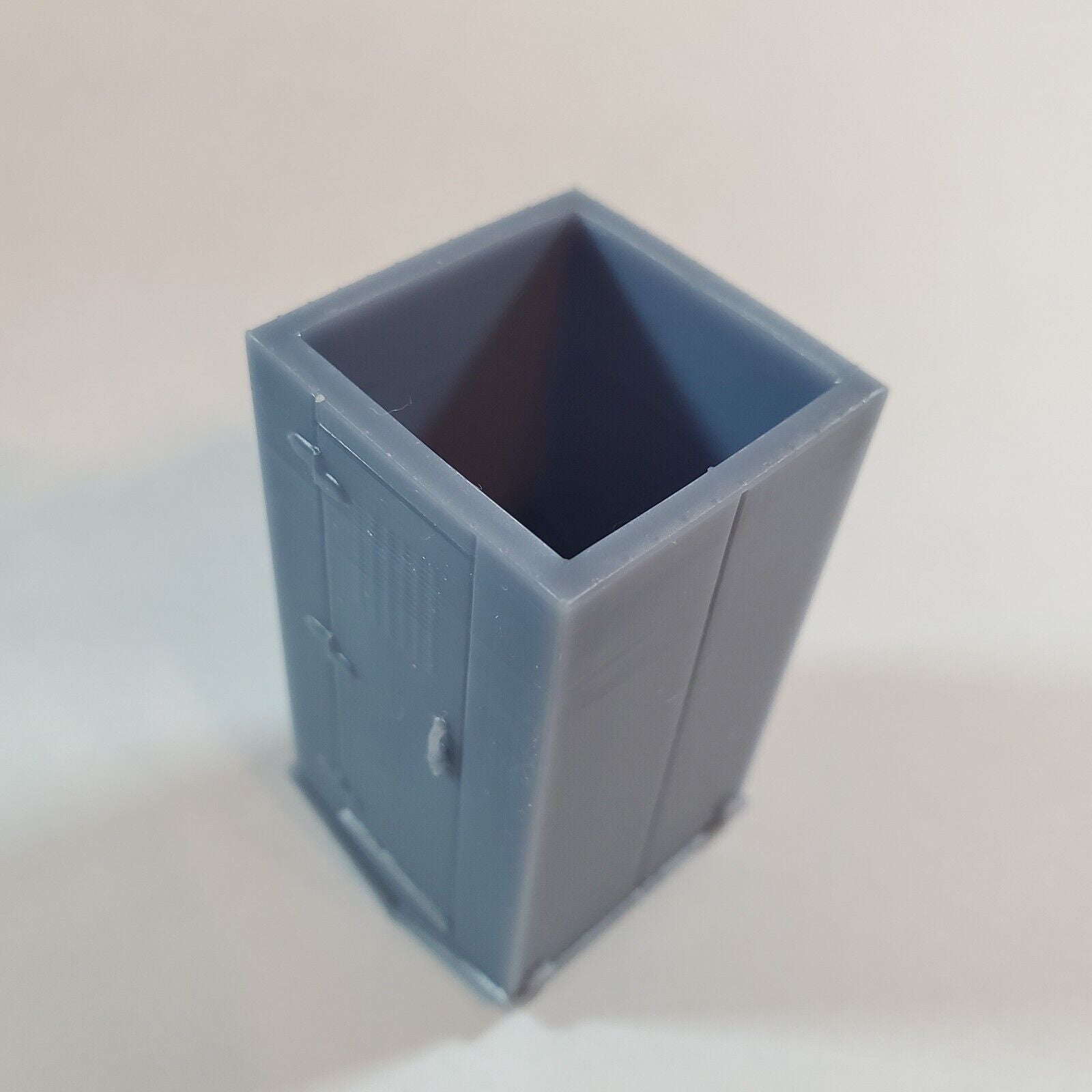 The railroad signal box, also referred to as a bungalow or house, contains the electronics and back-up batteries to control the crossing signals and arms/gates. This model is of a design used by Norfolk and Southern. This set is a 6 pack and does not contain any actual electronics. The model is resin 3D printed for maximum detail in N scale (1:160) and measures approximately 0.3" wide, 0.3" deep and 0.6" tall. The model comes unpainted. This model is for display only. It is not a toy. The model contains small parts that could present a choking hazard to children. It contains UV cured resin and should not be displayed in direct sunlight.The railroad signal box, also referred to as a bungalow or house, contains the electronics and back-up batteries to control the crossing signals and arms/gates. This model is of a design uséd by Norfolk and Southern. This set is a 6 pack and does not contain any actual electronics.