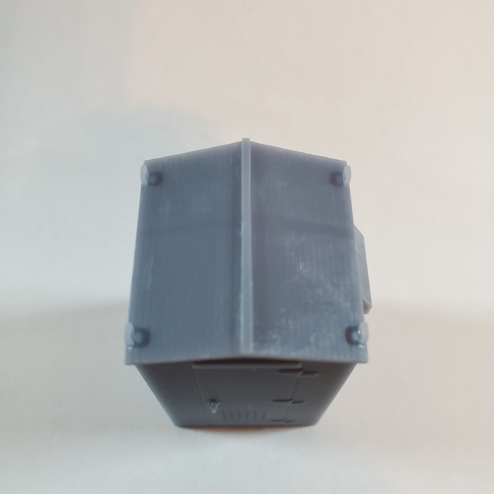 The model is resin 3D printed for maximum detail in N scale (1:160) and measures approximately 0.3" wide, 0.3" deep and 0.6" tall. The model comes unpainted.