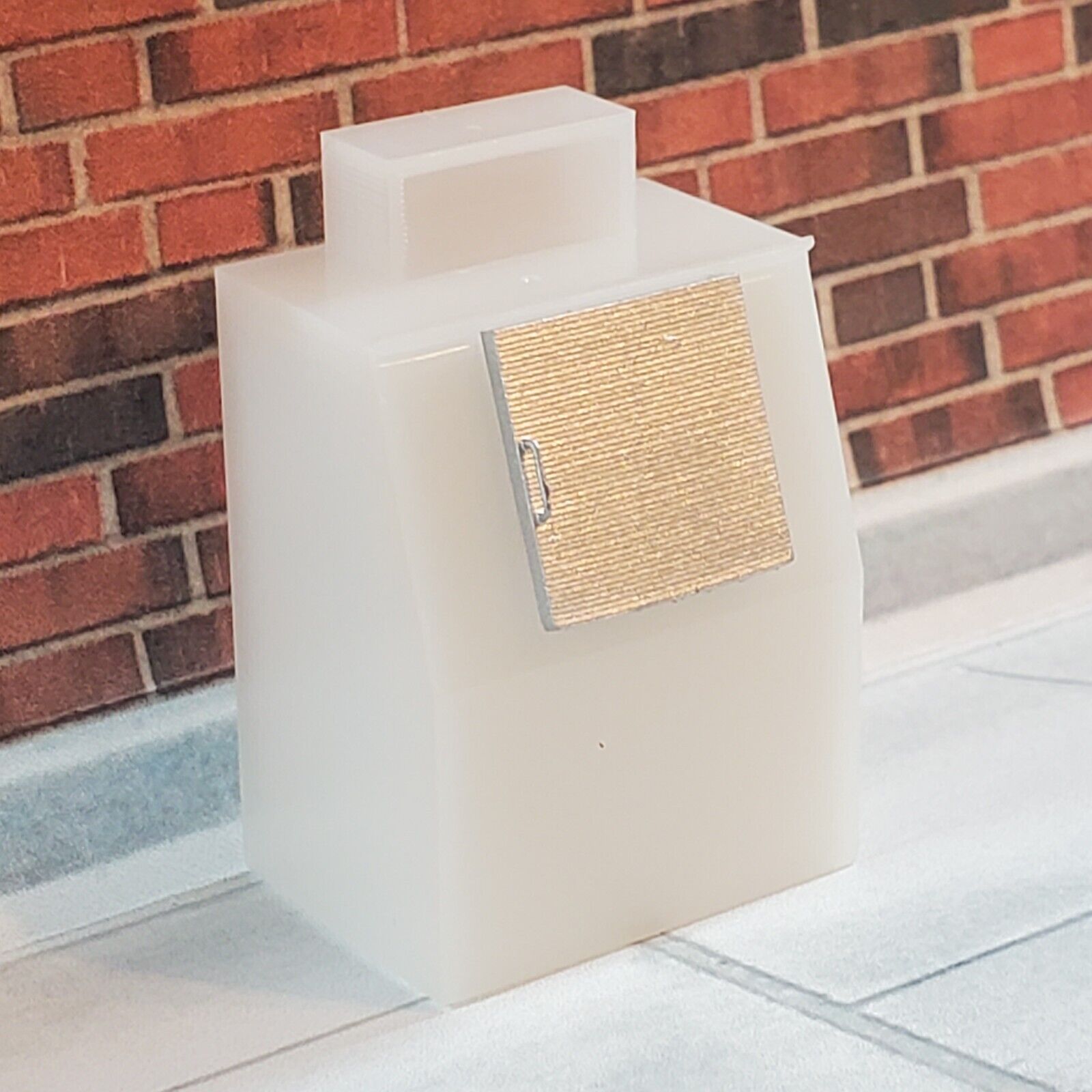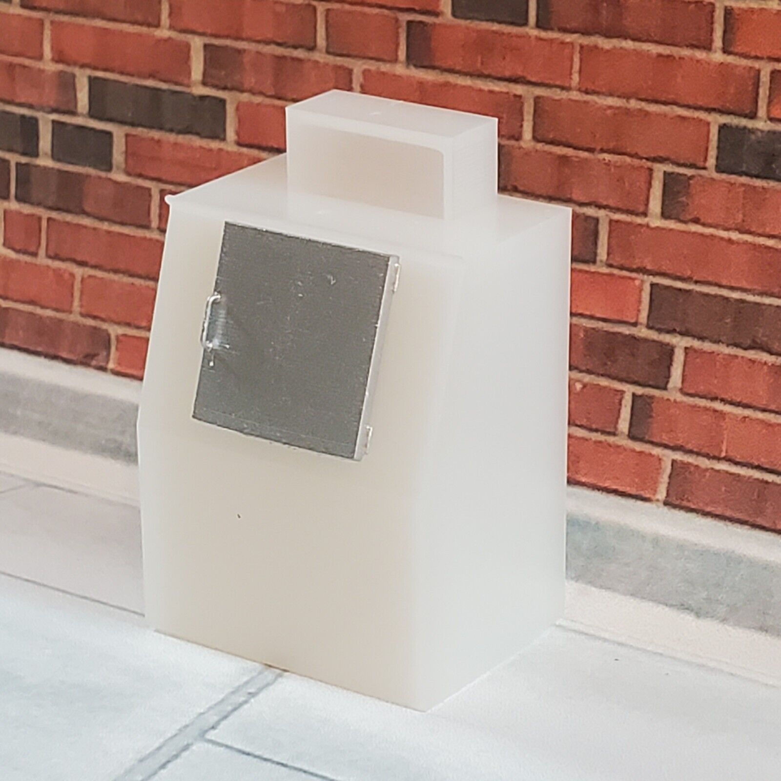 Designed in O scale (1:48) to represent a 50 scale inch wide bagged ice merchandiser/cooler that is commonly located outside of gas stations and convenience stores, this item is 3D printed in high quality resin which provides better details and less surface atifacts than other common types of 3D printing. Made in the United States, this scenery item is a must-have for any train enthusiast who wants to create a realistic and memorable train layout.